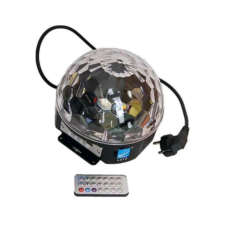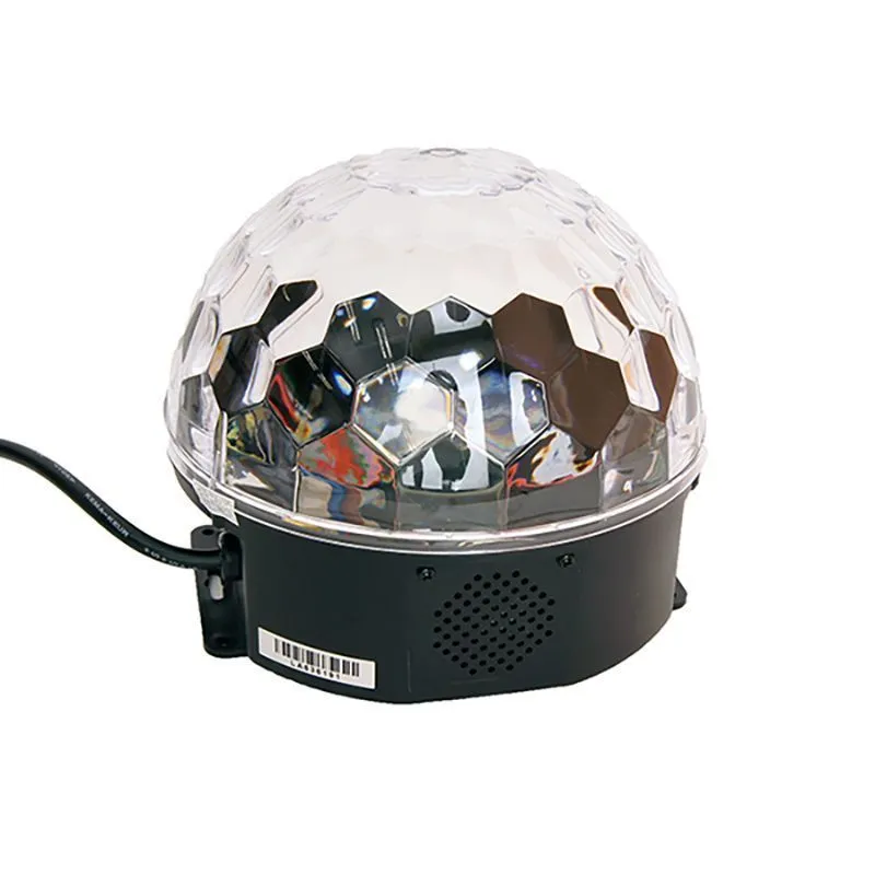 6 светодиодов различных цветов (красный, зеленый, синий, белый, оранжевый, розовый). Прочный пластиковый корпус. 82 мощных световых луча. Эффект «диско-шара». Встроенный проигрываткель MPЗ с USB-флешек с динамиком. Пульт дистанционного управления. USB разъем для подключения MP3-плеера. Срок службы 50,000 часов. Управление: звуком/автоматический/MP3-плеер/пульт ДУ. Размеры 195х195х170 мм. Вес 0.65 кг.