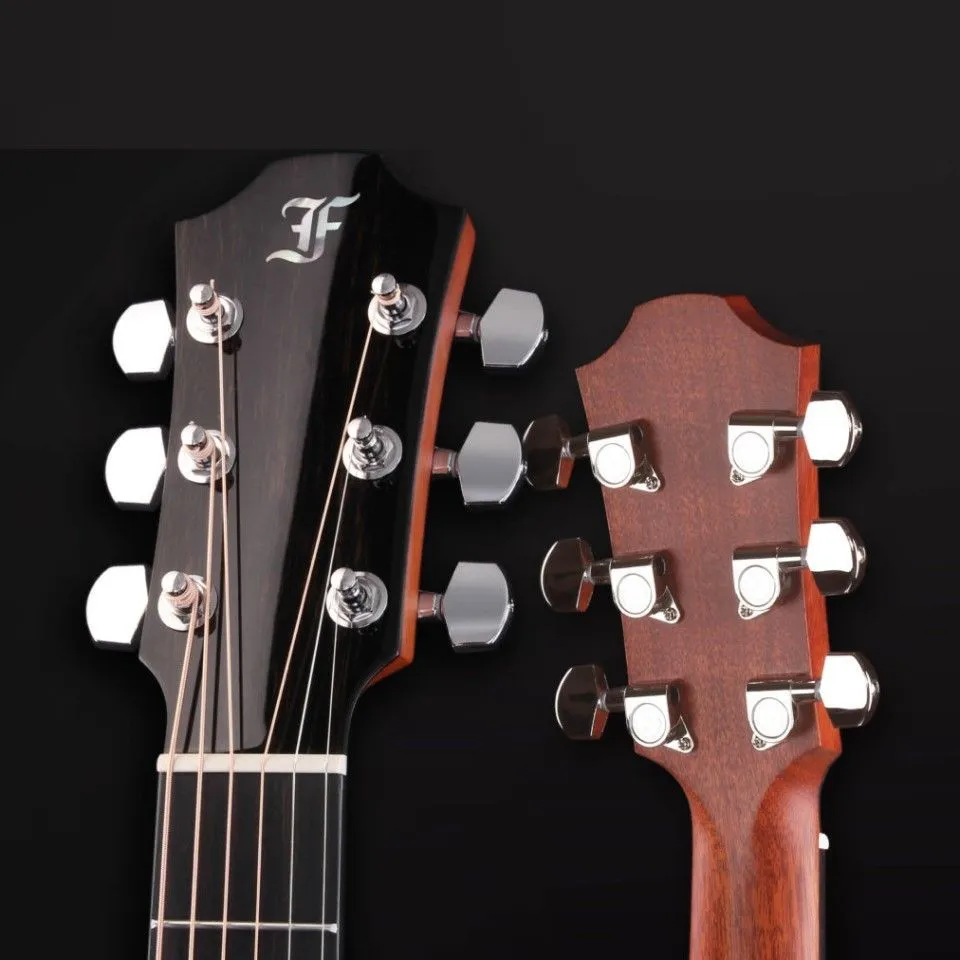 Верхняя дека выполнена из массива ситхинской ели. Нижняя дека и обечайка - из массива африканского красного дерева. Нижняя дека выпуклая, без пружин, что дает дополнительный резонанс. Комбинация древесины, конструктивные особенности, окантовка корпуса из имитации черепахового панциря, контрастный черно-белый пурфинг, розетка из ореха, глянцевое покрытие, все это придает инструменту не только стильный внешний вид, но и прекрасное насыщенное звучание по всему диапазону.