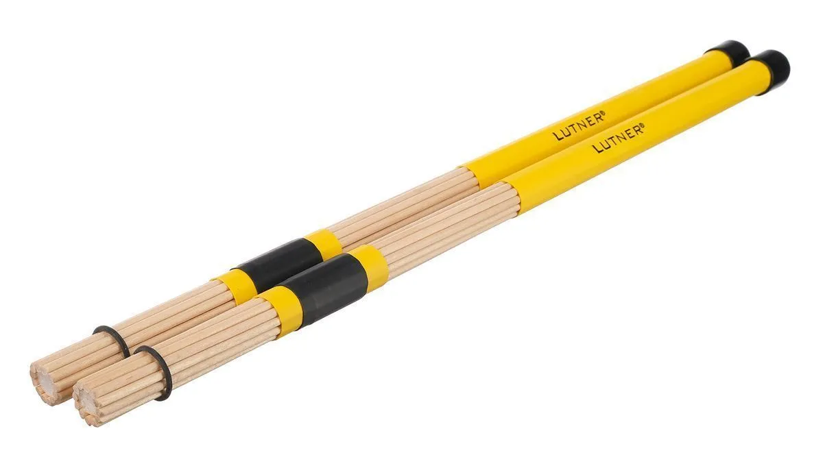 Барабанные палочки в виде связки деревянных прутиков и нейлоновым сердечником.