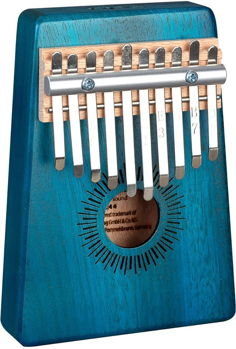 Калимба изготовлена из высококачественного красного дерева. Корпус усиливает низкие частоты и, таким образом, производит полный, чистый и теплый звук с завораживающим резонансом. Высококачественные металлические язычки настроены в до мажоре и имеют диапазон от c' - e'' (C4 - E5). Обозначение нот на язычках делают калимбу подходящей как для начинающих, так и для опытных музыкантов.