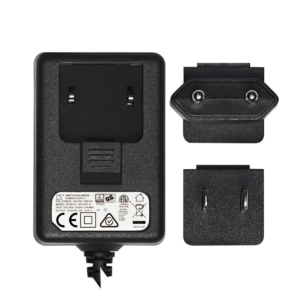 Название прибора: 12V DC Power Adapter DCPA04 Тип прибора: Блок питания постоянного напряжения (DC) Краткое описание: Если Вам необходим блок питания для оборудования потребляющего 12 В постоянного напряжения — этот блок питания для Вас Качественный кабель длиной 1,5 метра с угловым разъемом Блок питания импульсный, с минимальными собственными шумами и большим запасом мощности. Взято с сайта: dmtrpedals.ru. Прекрасно подойдёт для аналоговых и цифровых приборов Поставляется с четырьмя сменными вилками и готов работать в большинстве электросетей мира Параметры: Напряжение на выходе: 12V DC Масимальный ток нагрузки: 1 А Размер штеккера: 21/55 мм
