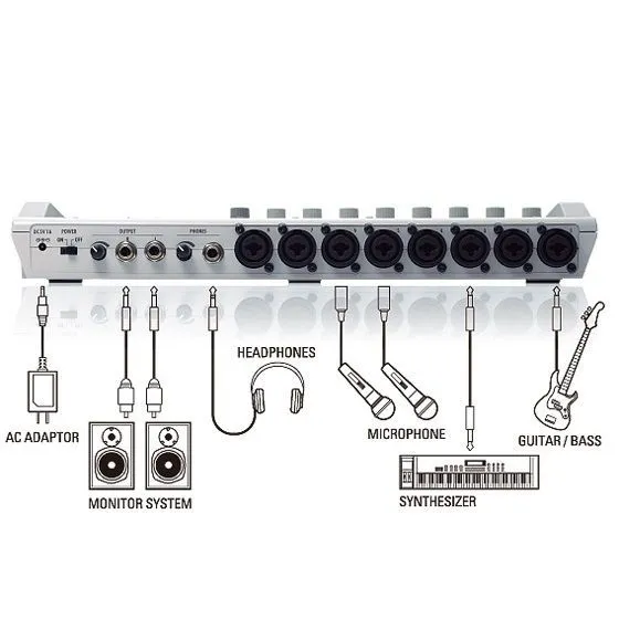 Zoom R16 – это, по сути дела, три устройства в одном, а именно: многоканальный рекордер, аудиоинтерфейс и контроллер. Таким образом, с помощью одного Zoom R16 Вы можете делать профессиональные записи студийного качества. Все данные записываются на идущую в комплекте с рекордером SD-карту (устройство поддерживает карты до 32 ГБ). На практике это означает, что Вы сможете записывать 16 дорожек в течение 100 часов. Кроме того, SD-карты избавляют Вас от риска потерять все свои данные при поломке жесткого диска. Подключите Zoom R16 к своему компьютеру через USB, запустите свою любимую цифровую рабочую станцию или используйте идущую в комплекте Cubase LE – и все готово для записи! Кроме того, наличие USB-порта означает, что Вы можете управлять программным обеспечением с помощью этого рекордера, а это значительно облегчает процесс записи. Технические характеристики: Запись в формате WAV (16/24 бит, 44, 1 кГц) Встроенные конденсаторные стереомикрофоны; В комплект поставки входит одна SD-карта на 1 ГБ (устройство поддерживает карты объемом до 32 ГБ) Возможность одновременной записи 8 треков Долгая работа от батареек для автономного использования USB-порт для работы с Вашим программным обеспечением 8 микрофонных входов/ 2 выхода 8 комбинированных входов Jack/XLR Более 100 встроенных студийных эффекта могут использоваться как дополнительные внешние эффекты Инструментальный вход с высоким сопротивлением Встроенный предусилитель с фантомным питанием на два канала Эмуляция Mackie Control для управления некоторыми из наиболее популярных цифровых рабочих станций (Cubase, Logic, Digital Performer и т.д.) Потрясающие гитарные усилители и эффекты Мастеринг профессионального качества (многополосный компрессор, нормалайзер и т.д.) Используйте два соединенных посредством USB рекордера Zoom R16 для синхронизированной работы с 16 треками Функции Undo/Redo Идет в комплекте с приложением Steinberg Cubase LE 4 Поддерживает Windows XP/Vista, Mac.